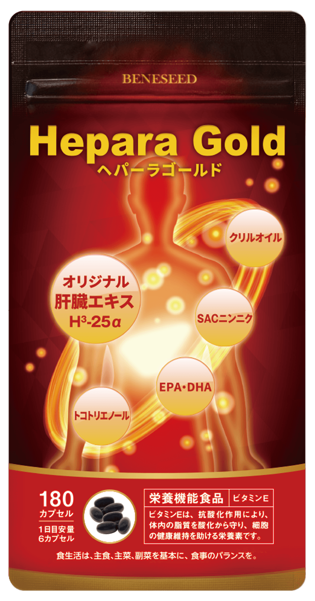 [6カプセル(約1.88g)中]エネルギー 10.96kcal、たんぱく質 0.746g、脂質 0.765g、炭水化物 0.271g、食塩相当量 0.010g、ビタミン E3.69mg 原材料名 EPA含有精製魚油(国内製造)、豚肝臓加水分解物、クリルオイル含有オキアミ抽出物、SAC含有ニンニクエキス末 / ゼラチン、グリセリン、ミツロウ、グリセリン脂肪酸エステル、トコトリエノール、カカオ色素、L-シスチン、L-アラニン、酸化防止剤(ビタミンE)、L-グルタミン 栄養機能食品